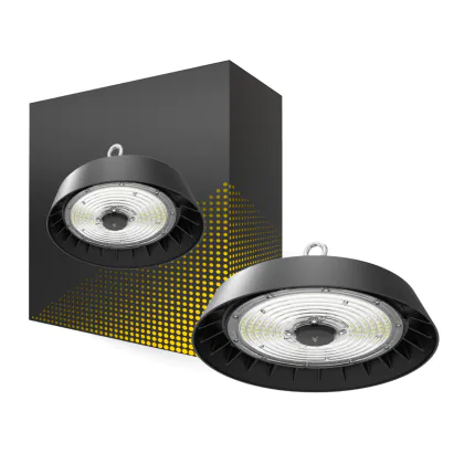 Descrizione Bright Choice Highbay LED ALBIOR Acciaio Nero 150W 25500lm 90D - 757 Bianco Freddo | IP65 - con Sensore di Movimento e Luce