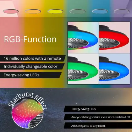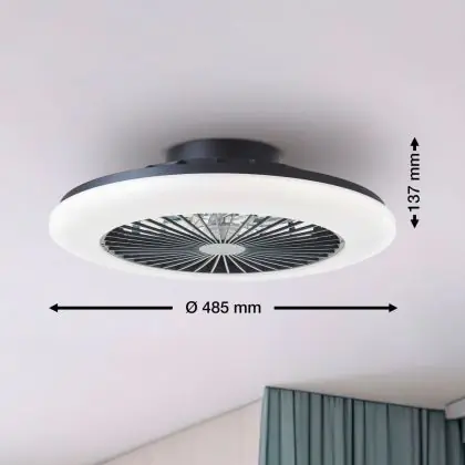 Brilliant Salerno Ventilatore Da Soffitto Plastica Metallo Nero 36W 4700lm - 830-865 CCT+RGB | 485mm - Telecomando Dimmerabile