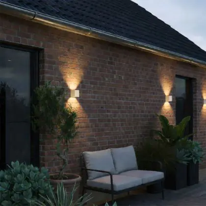 Stai cercando una applique a LED da usare all'esterno? Allora controlla il valore IP dell'apparecchio che vuoi comprare. Le lampade da parete che hanno grado di protezione IP44 (resistente agli spruzzi) o superiore possono essere appese all'esterno. Se una lampada sarà esposta a pioggia e acqua consigliamo di scegliere un apparecchio con valore IP di almeno 65. Bisogna considerare anche il valore IK, che è la misura in cui un apparecchio è resistente agli urti e al vandalismo.