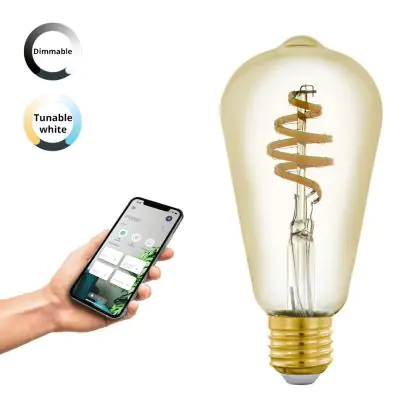 La Eglo Connect.Z Smart LED Edison E27 Filamento Ambra 4.9W 360lm - 827-865 Regolabile Bianca | Dimmerabile - Sostitutiva 25W è la perfetta sostituzione per la tua lampada convenzionale 25W con attacco E27 grazie alla sua tecnologia LED. Passare a LED ti offrirà tanti vantaggi!