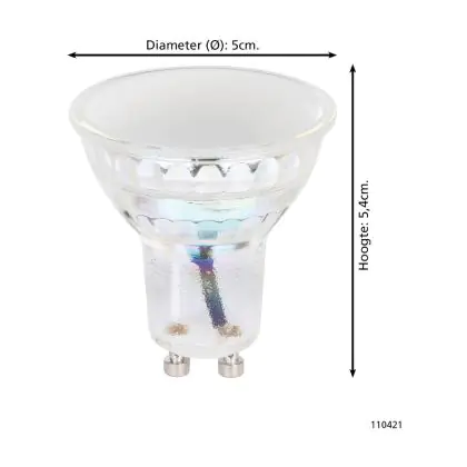 La Eglo Faretti LED GU10 PAR16 4.9W 345lm - 827-865 Regolabile Bianca + RGB | Zigbee Dimmerabile - Sostitutiva 25W è perfetta per la sostituzione della convenzionale Lampada alogena 25W GU10 con colore della luce . Questa Lampada ha una forma Spot con un diametro di 50mm. I due perni sono distanti tra loro 10mm. Questa lampada funziona con la 220V-230V e quindi non ha bisogno di trasformatori. Passare a LED ti offrirà molti vantaggi!