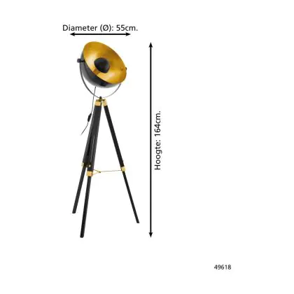 Eglo Lampada da terra Covaleda Legna Acciaio Nero Oro | IP20 - Adatto per 1x E27