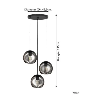 Eglo Luce Pendente Almanzora Acciaio Nero Rame | IP20 - Adatto per 3x E27