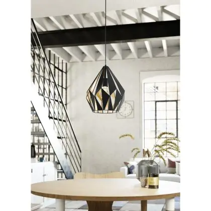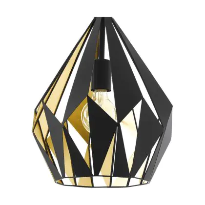 Eglo Luce Pendente Carlton 1 Acciaio Nero Oro | IP20 - Adatto per 1x E27