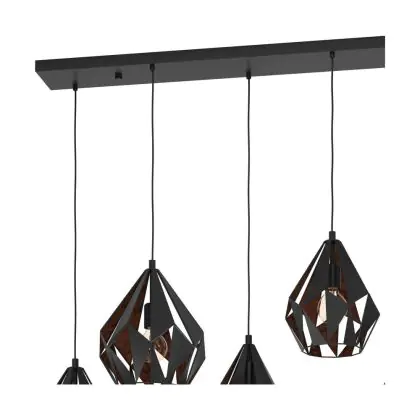Eglo Luce Pendente Carlton 1 Acciaio Nero Rame | IP20 - Adatto per 6x E27