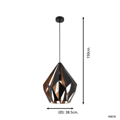 Eglo Luce Pendente Carlton 1 Nero, Rame | Adatto per E27