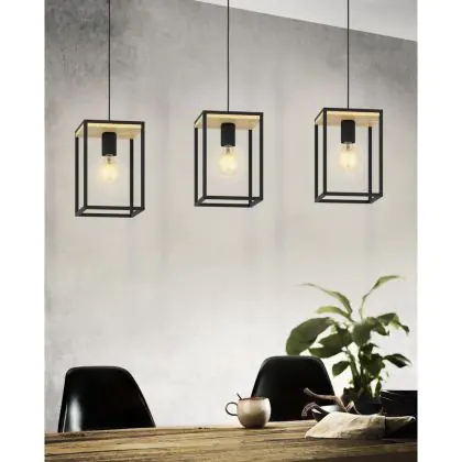 Eglo Luce Pendente Libertad Acciaio Legna Nero Marrone | IP20 - Adatto per 3x E27
