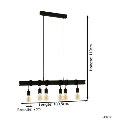 Eglo Luce Pendente Townshend 6 Acciaio Nero | IP20 - Adatto per 6x E27
