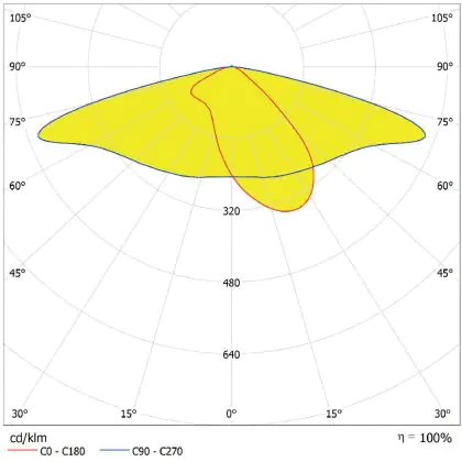 L'alloggiamento impermeabile di questa sorgente luminosa non è l'unica ragione per cui è perfetta per l'uso all'aperto. Infatti bisogna considerare anche la distribuzione della luce di questa lampada stradale, che ha apertura del fascio luminoso di 160x58° ed emette luce di colore 3000K - Luce Calda.