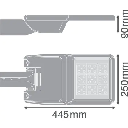 Descrizione Ledvance Illuminazione stradale LED Flex Grande RV25ST Grigio 25W 3550lm 25x145D - 740 Bianco Freddo | IP66 – Asimmetrico