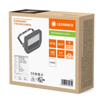 Descrizione Ledvance Proiettore LED Aluminium Bianca 17W 2400lm 100D - 840 Bianco Freddo | IP66 - Simmetrico