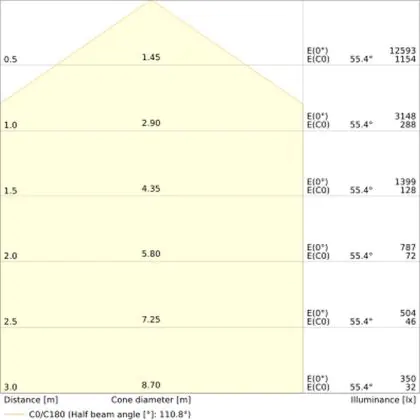 ![]() Il codice colore è una combinazione di resa cromatica (CRI) e colore della luce (Kelvin). La prima cifra indica la resa cromatica (1 = resa del colore molto bassa, 9 = massima resa del colore), mentre la seconda e la terza si riferiscono al colore della luce. Esempio: il codice colore 830 indica una buona resa cromatica (8) e luce bianca calda (3000K). |