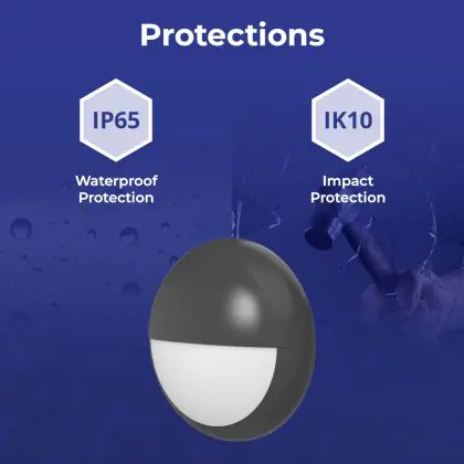 Un elemento importante delle plafoniere e delle applique LED è il loro livello di proezione IP, che indica la protezione contro l'ingresso di polvere e umidità/acqua. A partire da IP65, un apparecchio di illuminazione è a prova di polvere e acqua. Il valore IP di questa plafoniera LED è: IP65. Stai cercando una plafoniera LED per esterni? Allora presta attenzione alla protezione da urti e impatti, ovvero il valore IK, che per questa lampada è IK10 - 20 Joule.
