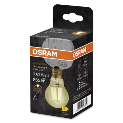 | Nome del fabbricante | Vintage 1906 LED CL A FIL GOLD 63 non-dim 7,5W/825 E27 | |