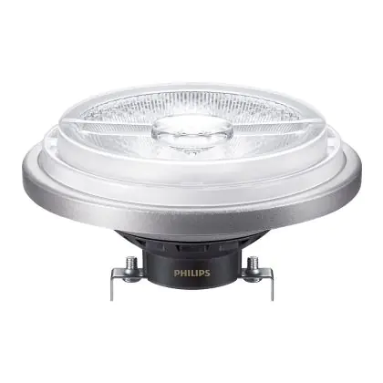 La Philips MASTER LED Faretti G53 AR111 10.8W 620lm 40D - 930 Luce Calda | Miglior resa cromatica - Dimmerabile - Sostitutiva 50W è la perfetta sostituzione della classica lamapda alogena50W G53 con colore della luce 930 Luce Calda. Questa lampadina ha una forma "Aluminium Reflector" (Spot) con diametro di 111mm e gli attacchi hanno una distanza di 53mm l’uno dall’altro. La lampada G53 è molto più sicura in ambienti umidi rispetto le lampade alogene a 230volt, le lampade G53 funzionano a 12V. Perciò c’è bisogno del trasformatore per avere un voltaggio di 12V. Puoi trovare i trasformatori adatti in "Accessori" su questa pagina prodotti. Di quale trasformatore hai bisogno, dipende dal numero di lampade che vuoi connettere. Il nostro servizio clienti puoi aiutarti con la scelta. Passare a LED ti offrirà tanti vantaggi!