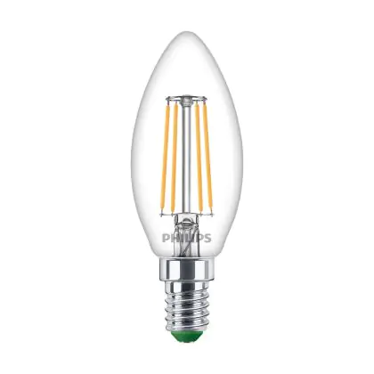 La lampada Philips Master Ultra Efficient LED E14 Candela Filamento Chiara 2.3W 485lm - 827 Bianco Molto Caldo | Sostitutiva 40W è il sostituto perfetto per le tue vecchie lampade 40W con attacco a vite piccolo E14 grazie alla sua tecnologia LED. Passare a LED ti offrirà molti vantaggi!